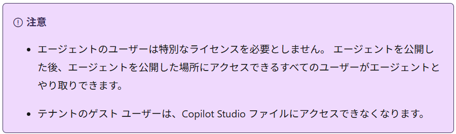 ただし、Teams やカスタム Web サイトなど、エージェントを公開した場所にアクセスできる必要がございます。