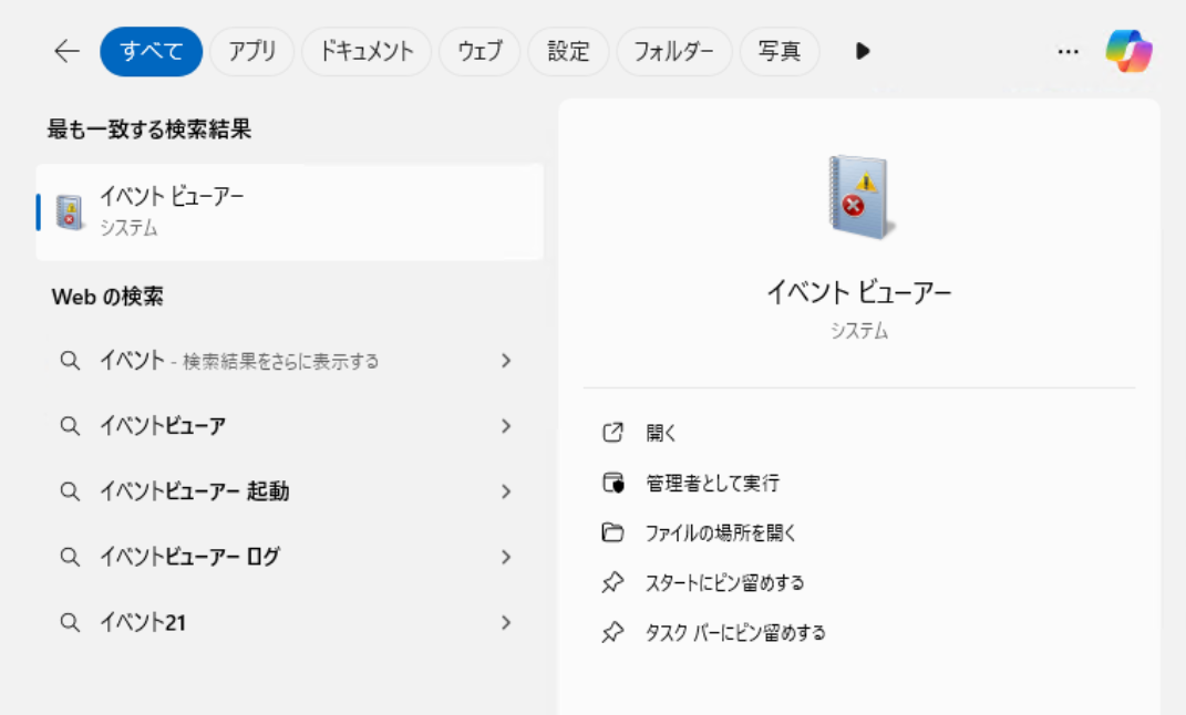 - Windows にインストールされている “イベントビューアー” を実行してください。