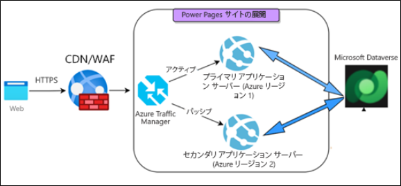 このため、Power Pages の Web サイトが機能するためには、Power Pages (Web サイト) が Dataverse に接続可能な状態である必要があります。