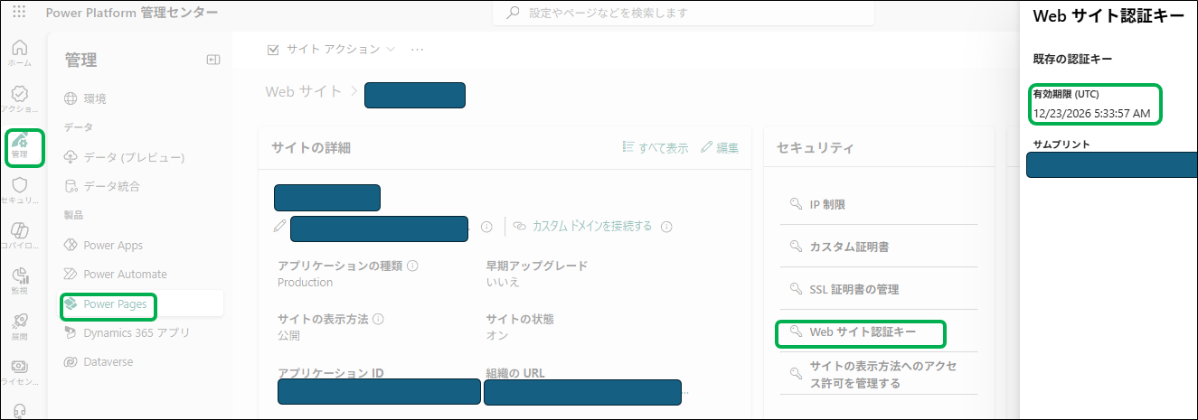 Power Pages 認証キーは以下の手順で更新可能です。- Power Platform 管理センター にアクセスします。