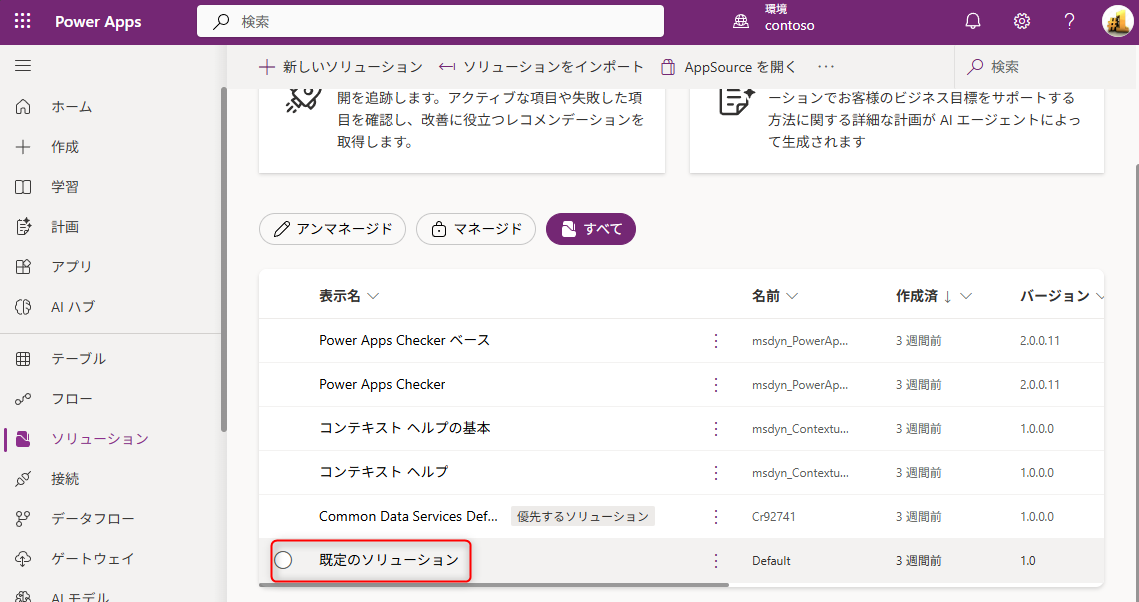 - Power Apps ポータル にサインインし、対象の環境を選択します