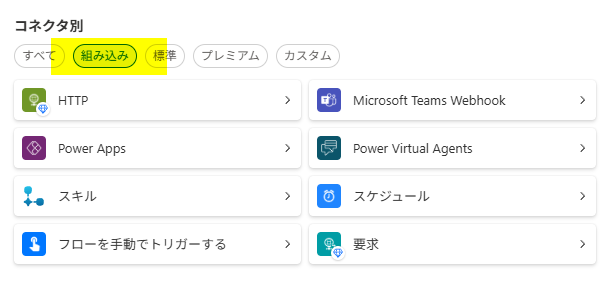 組込アクションやトリガーは Power Automate サービスから直接通信を行うため、前述のコネクタとは異なる許可を構成頂く必要がございます。