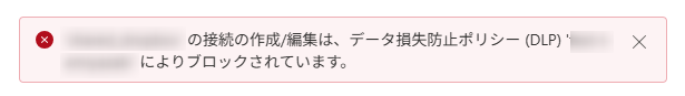 最新の DLP ポリシーに違反しているアプリやフローを実行しようとすると、以下のような状態になります。